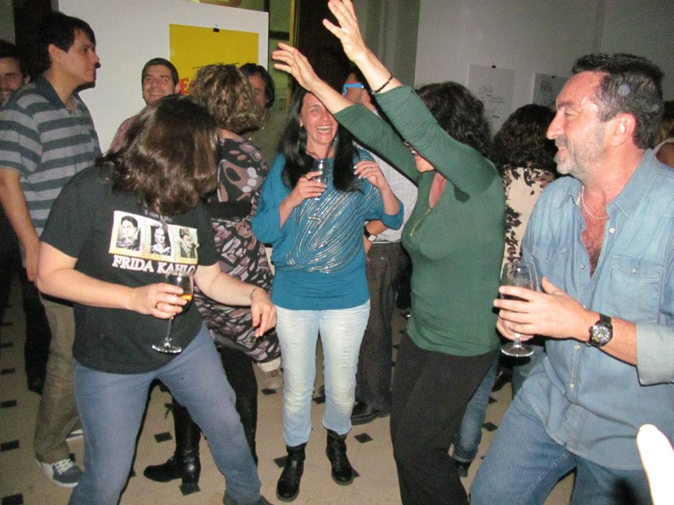brindando y riendo con lxs poetas amigxs (de izq. a der.)